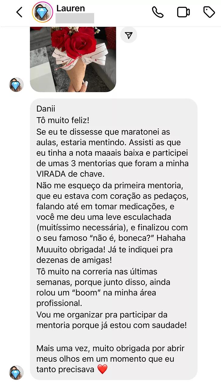+ Grupo de Whatsapp exclusivo para alunas para receber avisos e link da mentoria